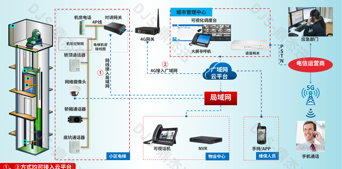 電梯SIP五方對講系統(tǒng)對接96333電梯應(yīng)急救援處置平臺-拓?fù)鋱D