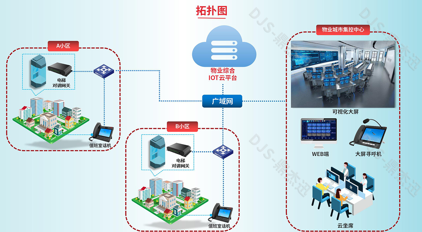 電梯SIP五方對講系統(tǒng)對接城市物業(yè)IOT平臺-拓?fù)鋱D