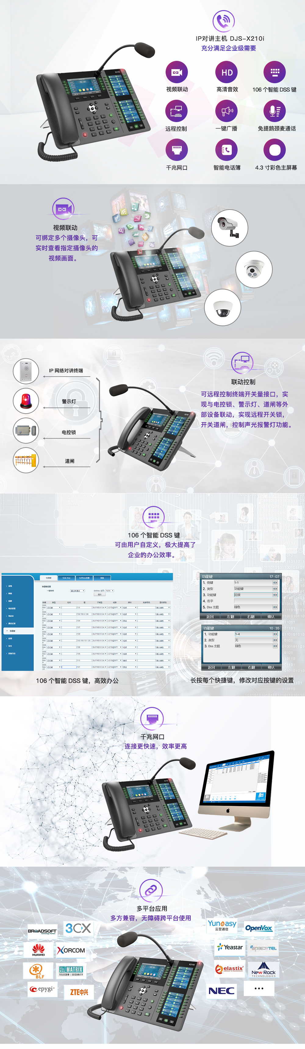 X210i是專門針對行業(yè)用戶需求研發(fā)的一款可視尋呼臺產(chǎn)品,配備鵝頸麥克風(fēng),支持高清免提通話。帶有智能可編程按鍵,可設(shè)置一鍵呼叫功能提高企業(yè)溝通效率。兼容標(biāo)準(zhǔn)SIP協(xié)議,可作為監(jiān)控中心、領(lǐng)導(dǎo)辦公室管理主機(jī)使用,可對管理轄區(qū)內(nèi)的主機(jī)和分機(jī)進(jìn)行呼叫、雙向?qū)χv、監(jiān)聽/監(jiān)視、廣播喊話。X210i能夠讓企業(yè)最大化地提升日常業(yè)務(wù)管理效率和應(yīng)急情況處理能力。